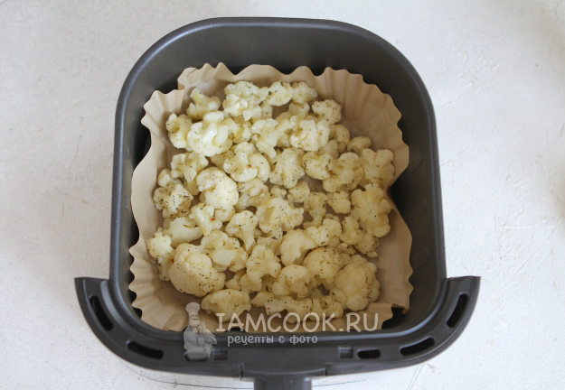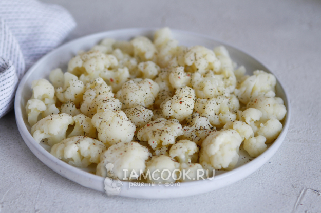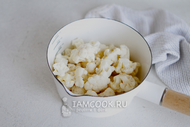 Цветную капусту разделить на соцветия и слегка отварить (в течение 3-4 минут) в подсоленной воде.
