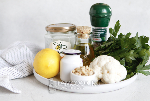 Продукты для приготовления салата из цветной капусты с петрушкой - перед вами.