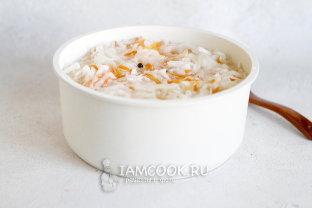 В течение всего этого времени будет активно выделяться капустный сок. Мы его не выливаем, иначе капуста может получиться сухой.