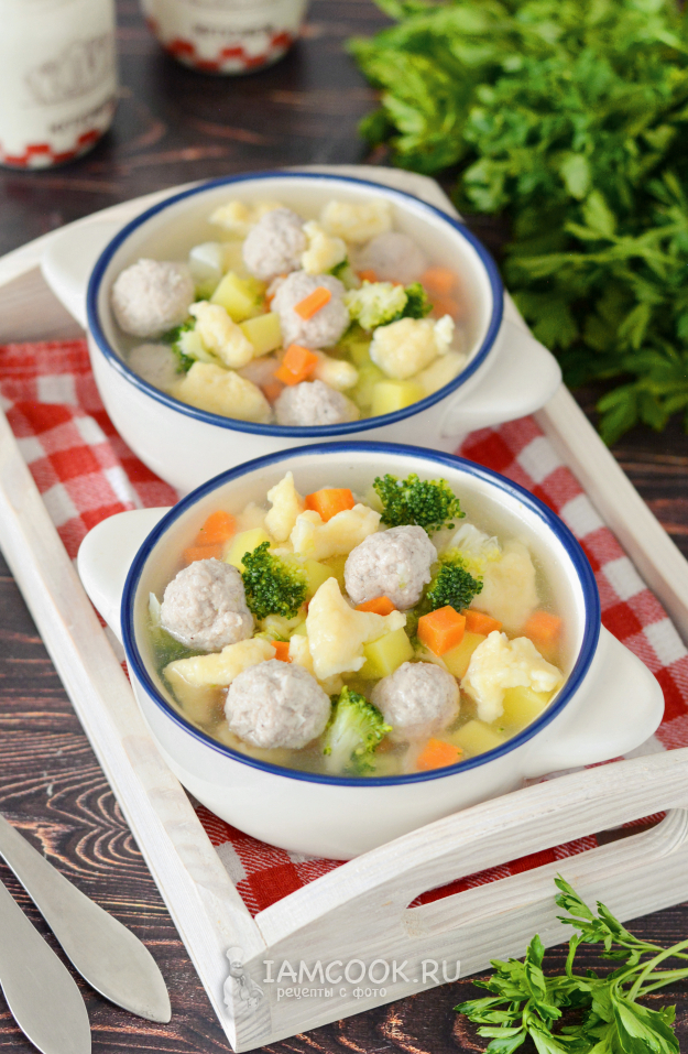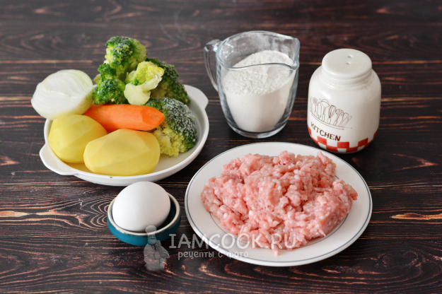 Соберите все необходимые продукты для приготовления супа с фрикадельками и клецками.