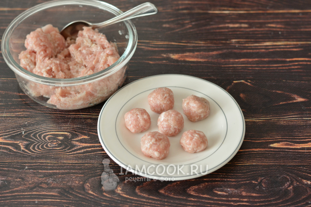 Сформируйте из фарша маленькие фрикадельки и пока отставьте их в сторонку.