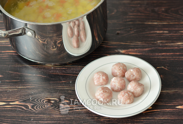 Первым делом приготовьте фрикадельки. Кстати, если у вас есть в заморозке готовые фрикадельки, то они отлично подойдут.