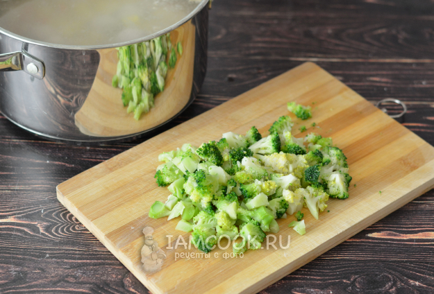 После чего добавьте нарезанную мелкими кусочками капусту брокколи.