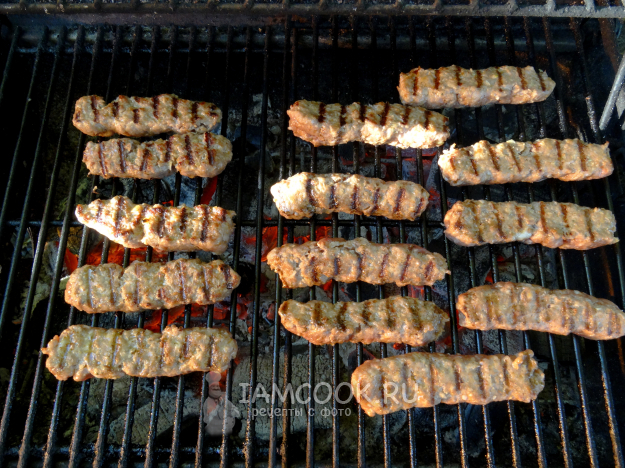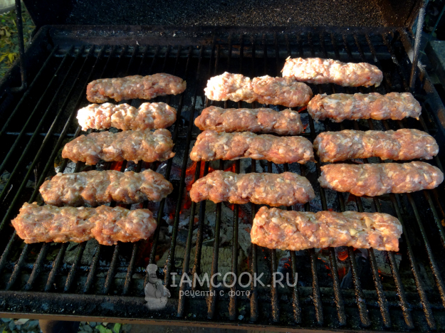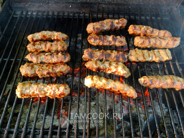 Выложить чевапчичи на решетку мангала с умеренным огнем.