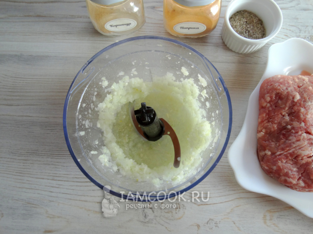 Чеснок и лук измельчить в блендере или перекрутить в мясорубке.