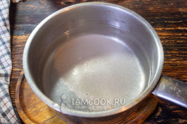 Затем слейте жидкость в кастрюлю, добавьте сахар и перемешайте. Доведите до кипения.