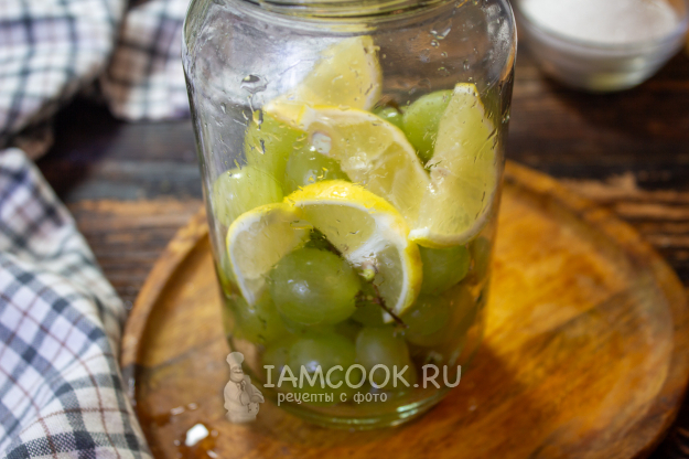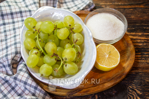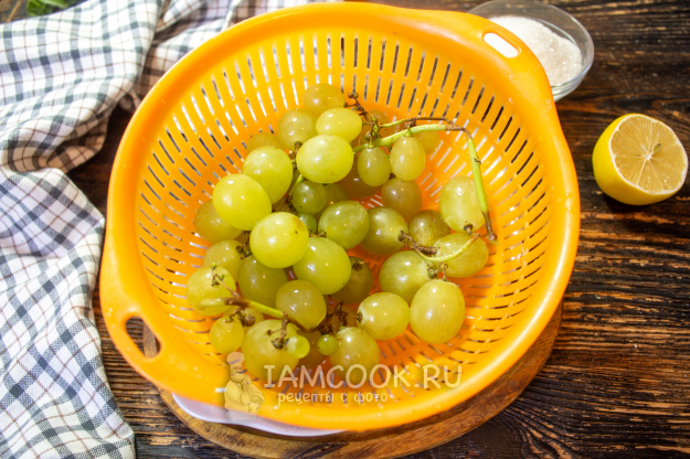 Соберите необходимые продукты для приготовления компота из винограда с лимоном.