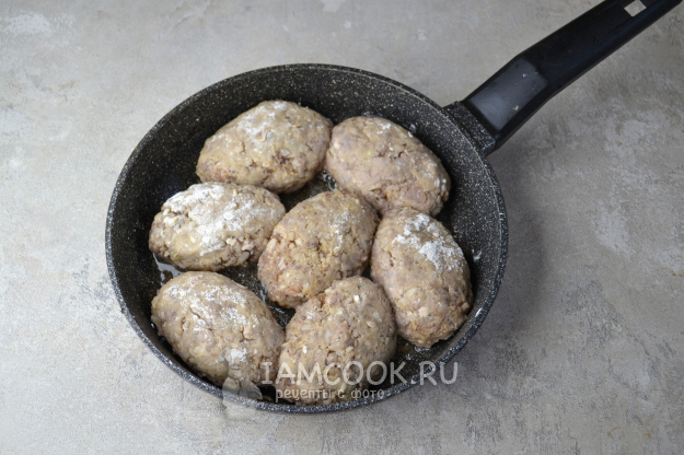 Обкатайте каждую котлету в муке со всех сторон.