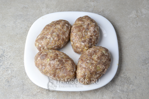 Сформуйте котлеты, защипнув края так, чтобы сыр оказался внутри. Удобно формовать котлеты, положив фарш на ладонь.