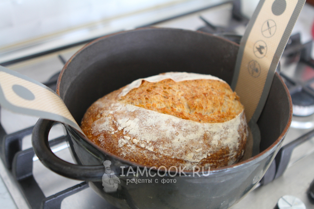 В течение часа при максимальной температуре вашей духовки разогреть ее. Я выпекала хлеб в казане, поэтому разогревала его вместе с духовкой.