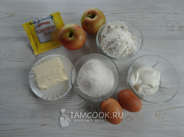 Яблочный пирог-перевертыш с карамелью готовим из таких ингредиентов.
