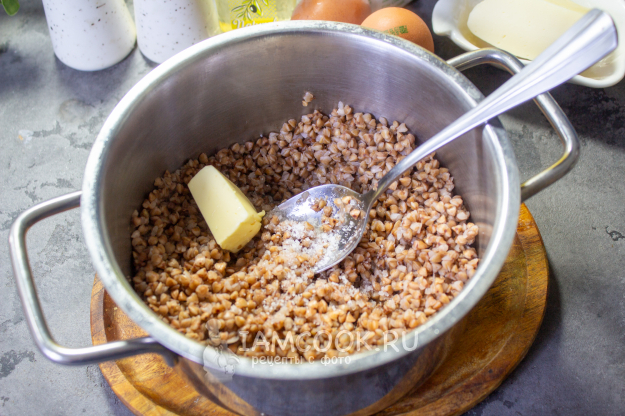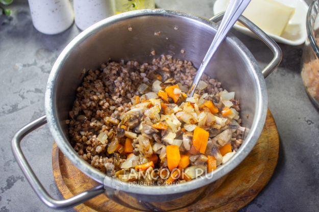 Вторую часть овощей добавьте к готовой гречневой каше.