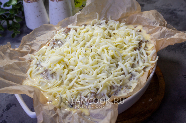 Посыпьте натертым сыром и запекайте блюдо в предварительно разогретой духовке 40 минут (ориентируйтесь по своей духовке).
