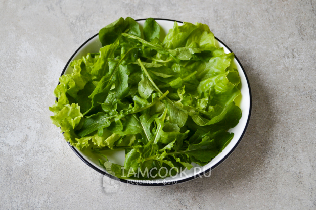 В глубокую тарелку положите рукколу и другую зелень.