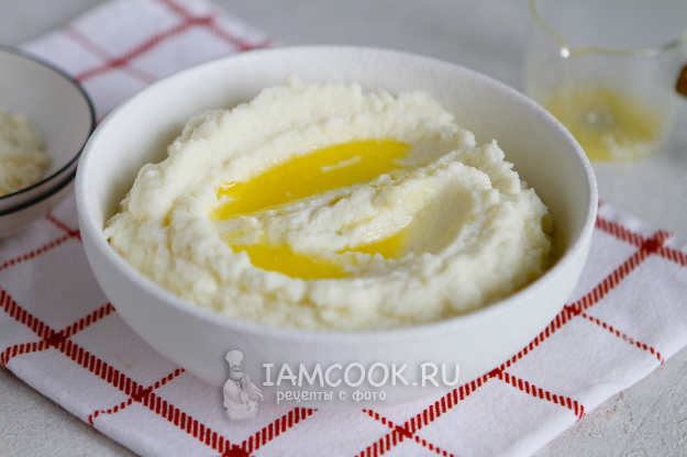 При помощи толкушки пюрировать картофель, добавить сыр и кусочек растопленного масла. Все ингредиенты тщательно перемешать. Начинка для вареников готова. По желанию можно добавить еще любимые специи.