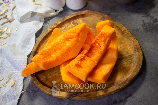 Соберите необходимые продукты для приготовления салата из тыквы и вареного яйца. Тыкву возьмите вкусную, сочную и спелую. Мне нравятся сорта мускатной тыквы. Куриные яйца отварите вкрутую и остудите. Сыр подойдет с более ярким вкусом и ароматом, я взяла Маасдам.