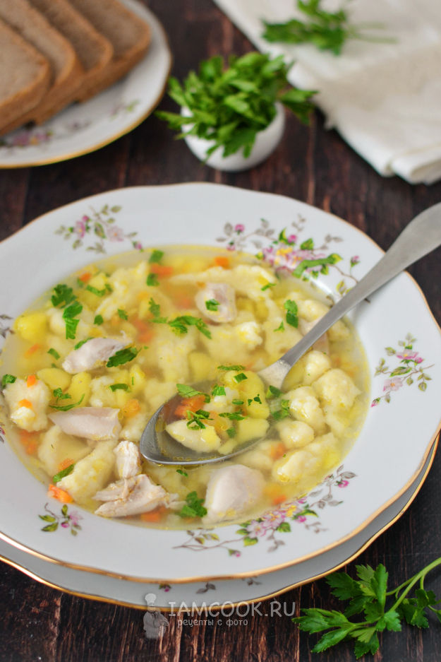 Проварите куриный суп с картофельными клецками 2-3 минуты и снимайте с огня, он готов!
