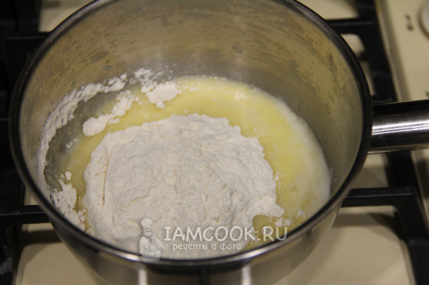 Добавить в сотейник муку.