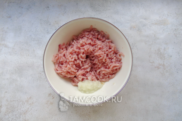Филе любой крупной рыбы (у меня карп) пропустите через мясорубку дважды. Репчатый лук измельчите в мясорубке или блендере.