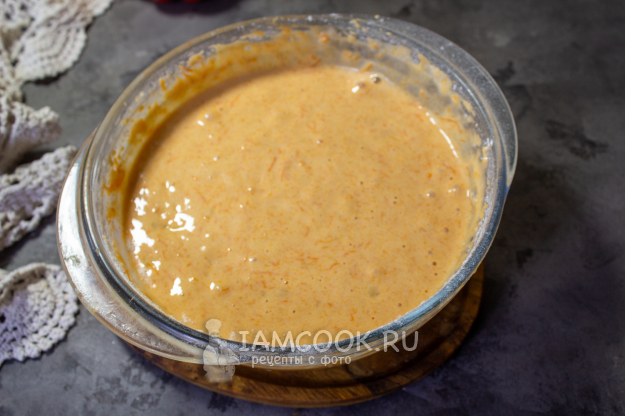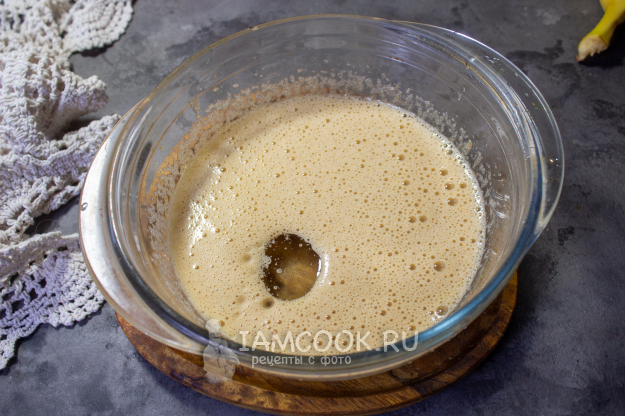 Перемешайте массу миксером или венчиком. Влейте растительное масло без яркого вкуса и запаха. Перемешайте.
