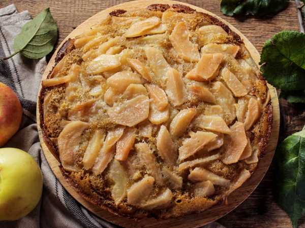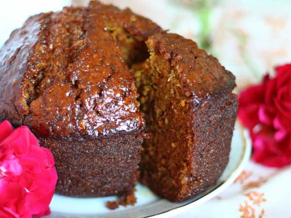 Аккуратно переложите пирог на решетку и полностью охладите. А потом украсьте верх по желанию. Я растопила шоколад, нанесла из него сеточку и присыпала грецким орехом.