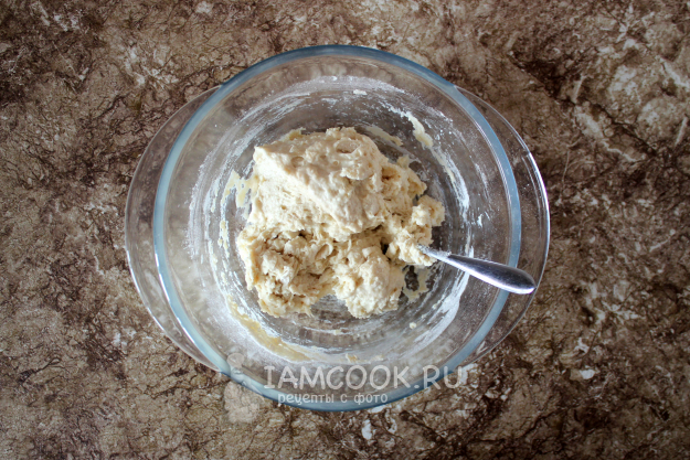 Замесите тесто и постарайтесь не забивать его мукой, хотя оно и будет выглядеть липким. Лучше руки смажьте растительным маслом несколько раз во время вымешивания.