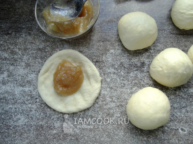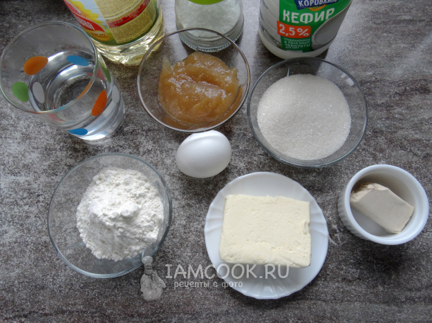 Чтобы испечь расстегай с повидлом, я взяла яблочное повидло и остальные ингредиенты по списку.