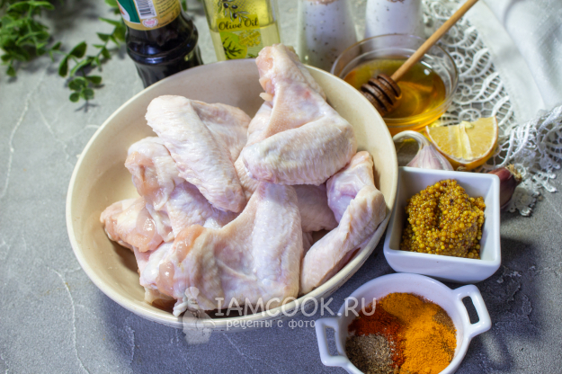 Соберите необходимые продукты для приготовления острых крылышек к пиву в духовке. И приступим.