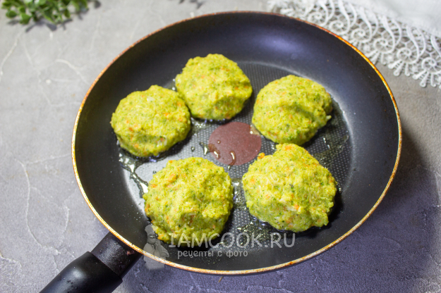 Сковороду с хорошим антипригарным покрытием нагрейте, добавьте масло и выложите небольшие котлеты. Котлеты я формировала слегка влажными руками. Жарьте при среднем нагреве с одной стороны несколько минут.