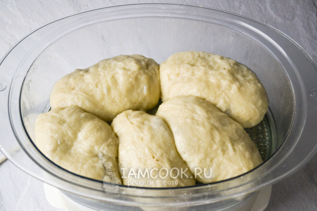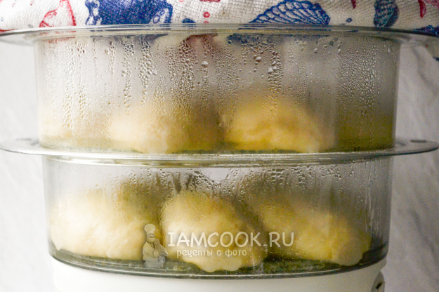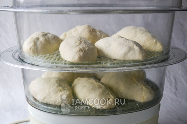 Смажьте поддоны пароварки или мантышницы растительным маслом и положите заготовки пирожков на расстоянии друг от друга. Оставьте пирожки на расстойку на 30 минут или немного дольше.