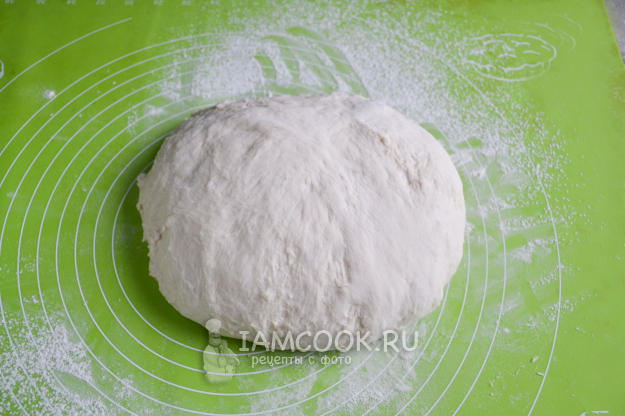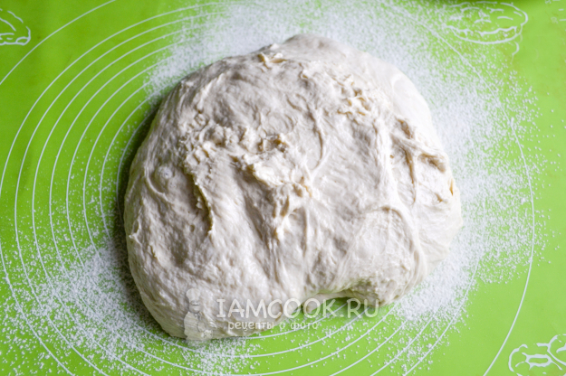 Обомните тесто руками на посыпанном мукой столе. Разделите тесто на равные кусочки. Прикройте их пищевой пленкой, чтобы не подсохли, пока будете формовать пирожки.