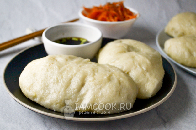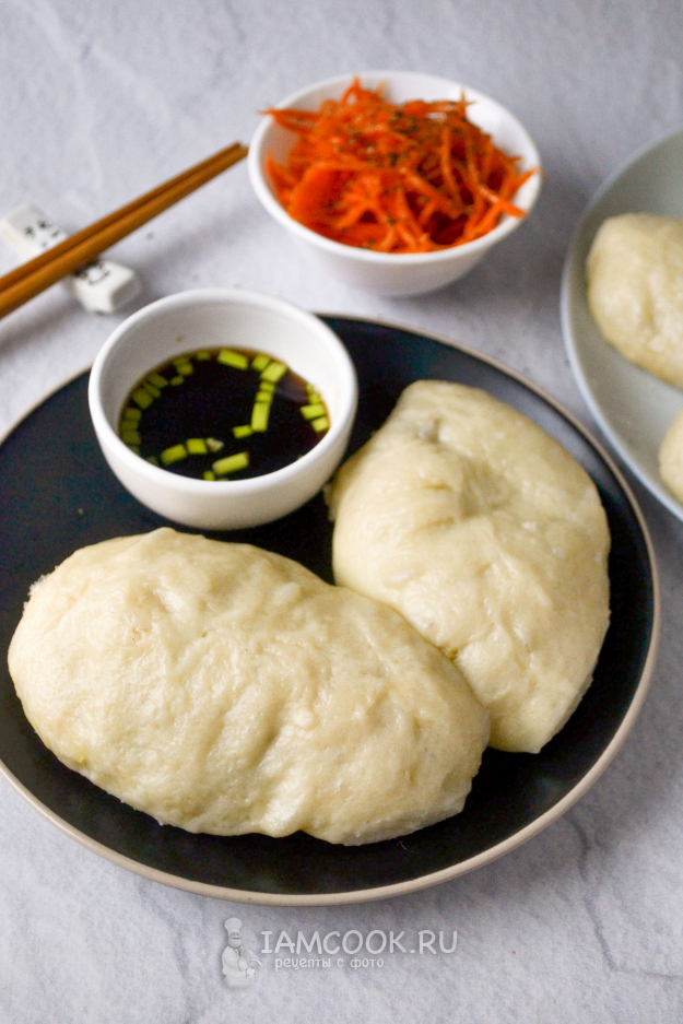 Подавайте паровые пирожки с соевым соусом, морковью по-корейски.