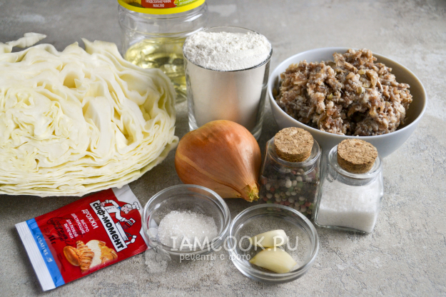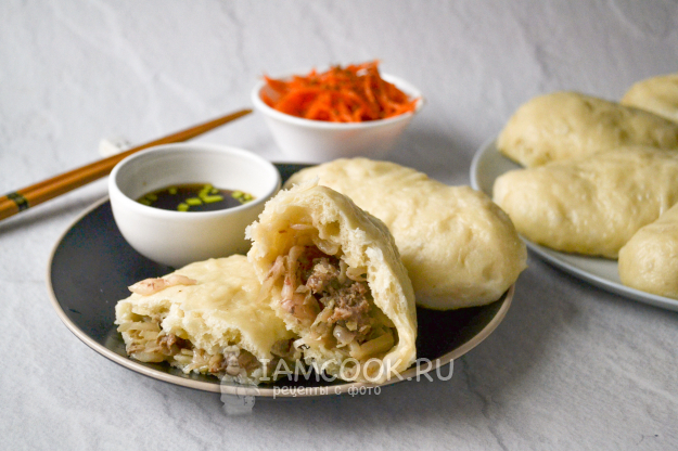 Соберите необходимые продукты для приготовления корейских пирожков с мясом на пару.