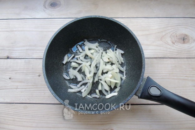 Жарьте лук до прозрачности, 5-6 минут перемешивая.