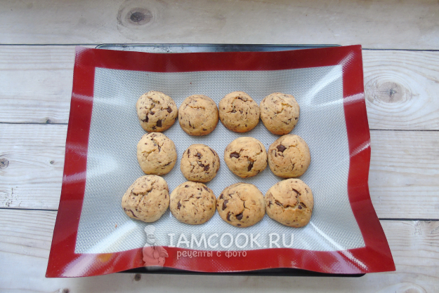 Выпекайте американское печенье с шоколадом в духовке, заранее разогретой до 180 градусов, 25-30 минут. Время выпекания зависит от вашей духовки.