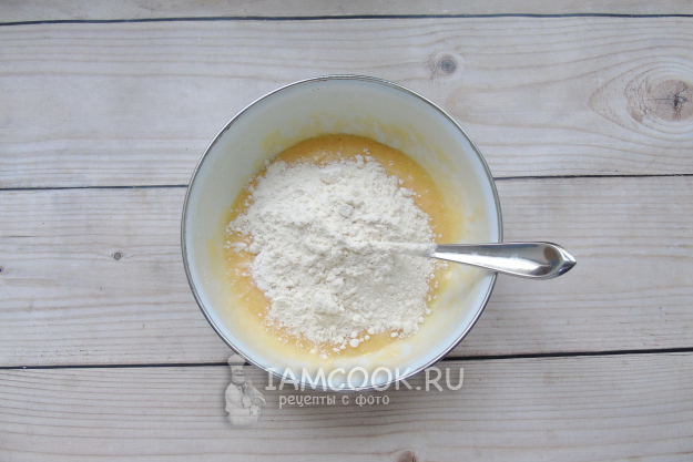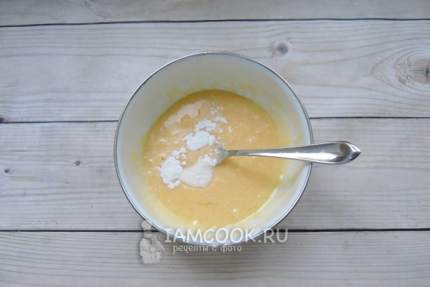 Снова хорошо перемешайте. Насыпьте ванильный сахар, соль и разрыхлитель теста.