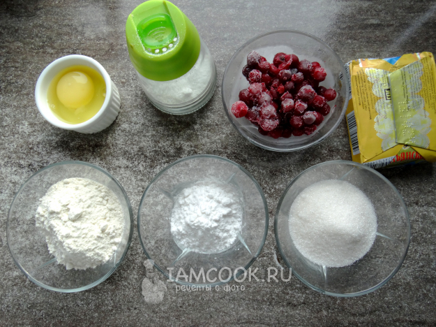 Песочное печенье с клюквой готовим из таких ингредиентов.