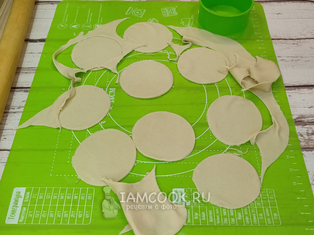 Тесто разделите на удобные колобки или колбаски. Мне привычнее из одного большого пласта вырезать кружочки.