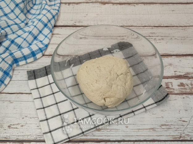 Затем, когда оно несколько остынет, подсыпая по необходимости оставшуюся муку, руками замесите плотное, эластичное тесто, не липнущее к рукам. Накройте пленкой, оставьте отдохнуть минут на 15-20.