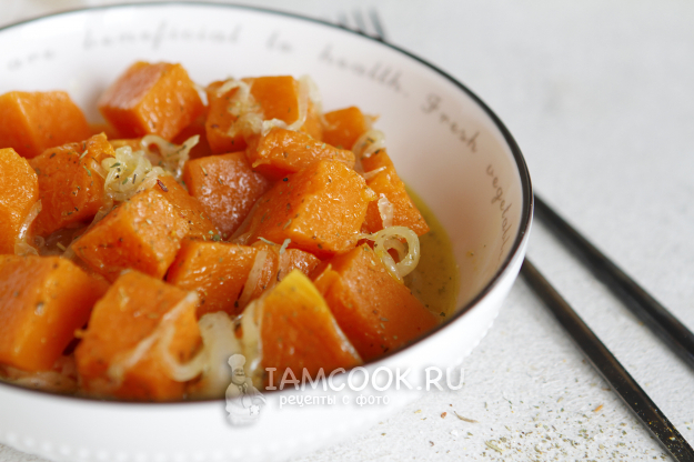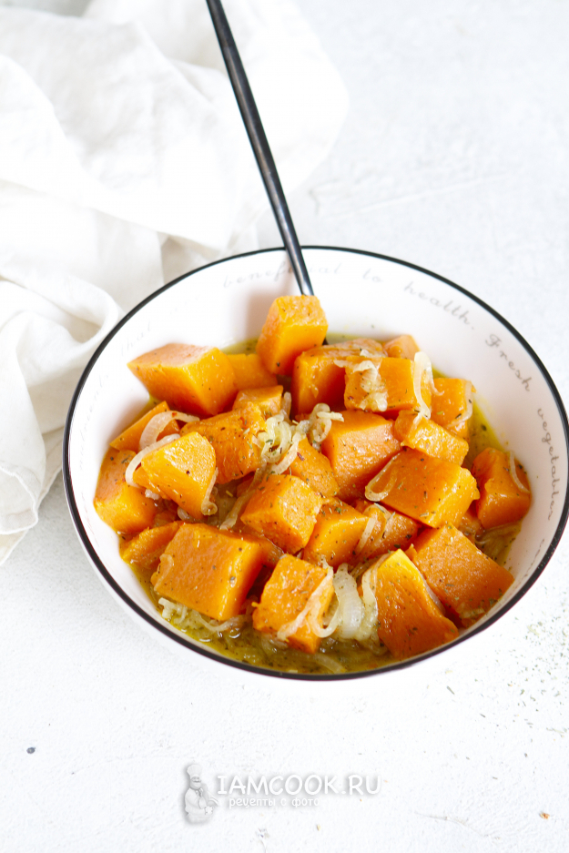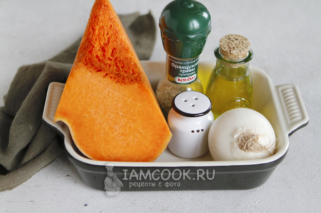 Продукты для приготовления тыквы с луком в духовке - перед вами. Сорта мускатной тыквы обладают сочностью и мягкостью, поэтому они больше подходят для запекания.