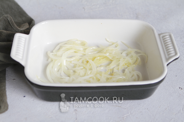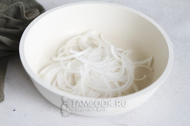 Небольшую головку репчатого лука почистить и нарезать полукольцами.