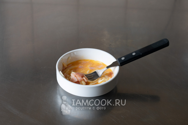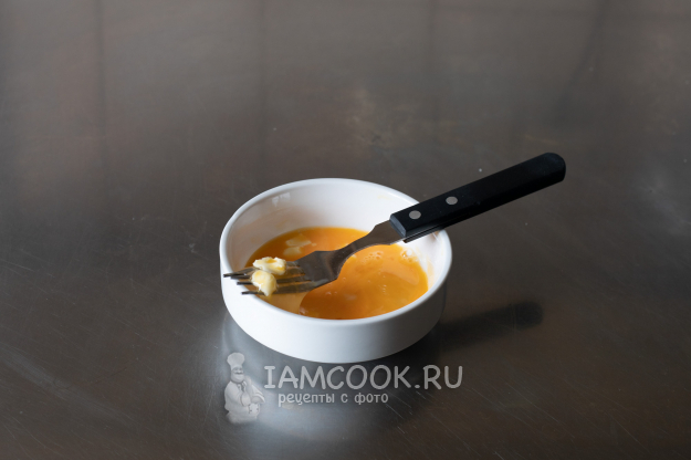 Для омлета без сыра смешаем яйцо с небольшим количеством сливочного или растительного масла и щепоткой соли.