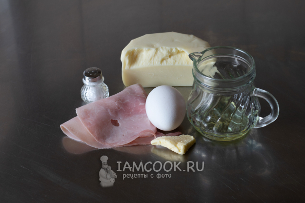 Для омлета в вафельнице с сыром смешаем 1 яйцо, сыр, ветчину и немного растительного либо сливочного масла (около грамма, по сути дела, потому что грамм - это примерно орех кешью). Солить не нужно.