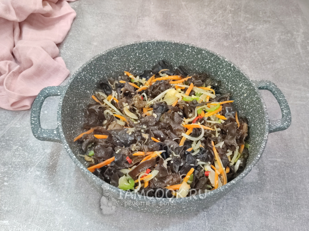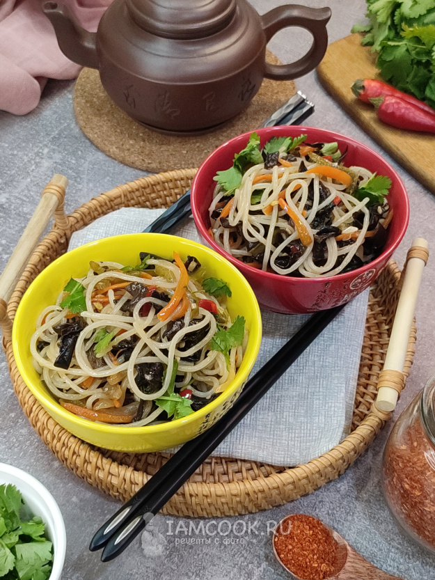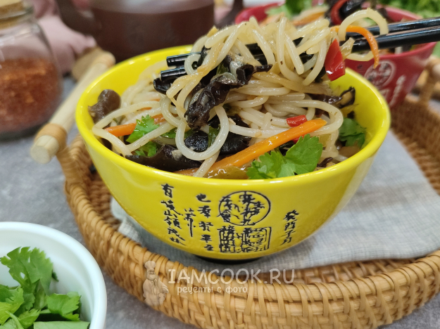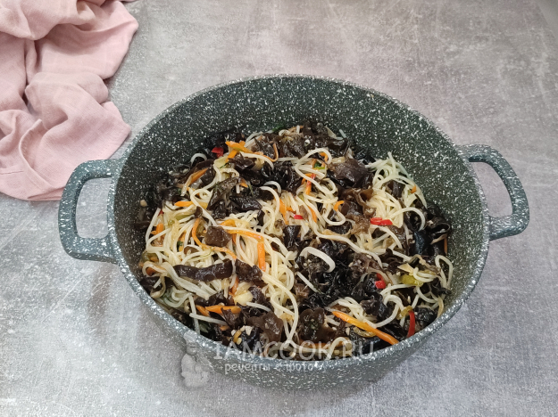 Подавайте лапшу с древесными грибами с пылу с жару!!
