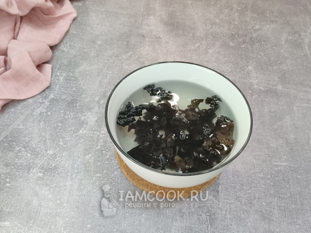 Соберите ингредиенты для приготовления лапши с древесными грибами. Лапша подойдет пшеничная, гречневая или крахмальная, как у меня, тут на ваш вкус)). При покупке древесных грибов, если есть выбор, отдайте предпочтение просто высушенным, весовым. Те, что спрессованные в брикетах (из личного опыта), разбухают слабо, в них больше мусора и грибных обломков.