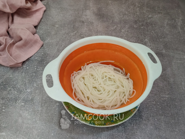 Лапшу отварите согласно инструкции на упаковке. Я отварила и промыла холодной водой.