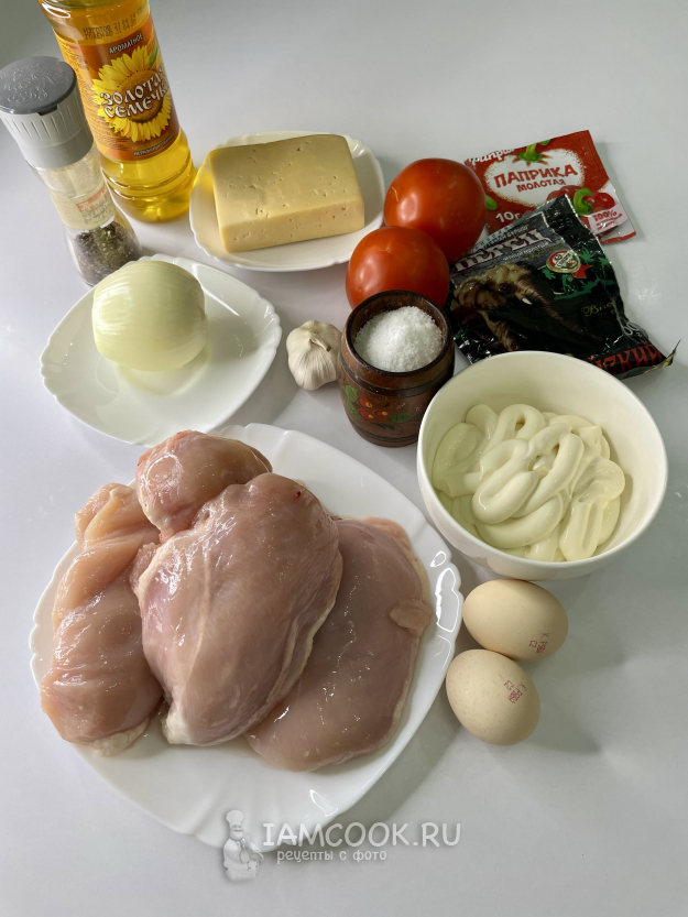 Для приготовления запеченного куриного филе в духовке соберем все необходимые ингредиенты по списку.