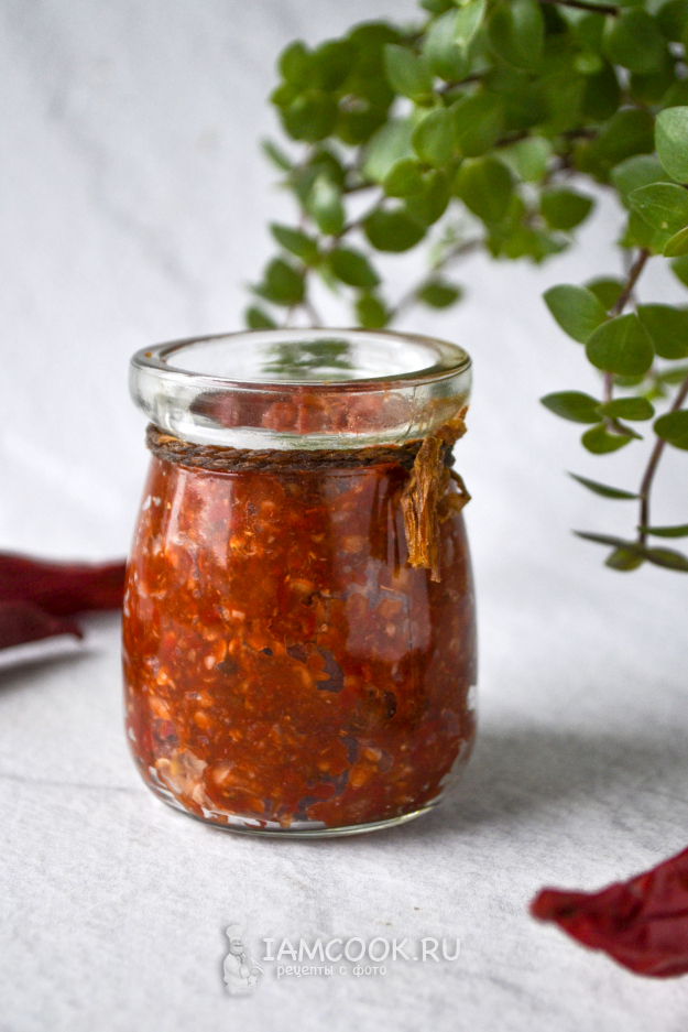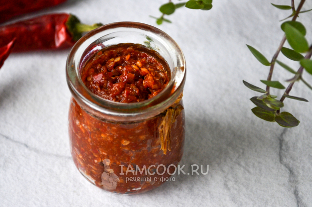 Жгучая Мегрельская аджика готова. Храните аджику в баночке под плотной крышкой в холодильнике. Чтобы аджика не подсохла, влейте в баночку немного растительного масла без запаха.