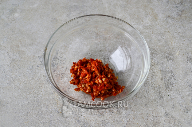 Прокрутите перец в мясорубке с самой мелкой решеткой.