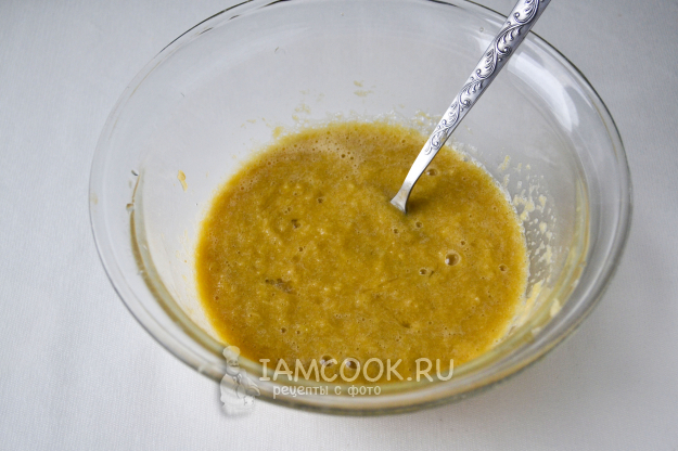 Влейте в подошедшее тесто растительное масло и аккуратно перемешайте.